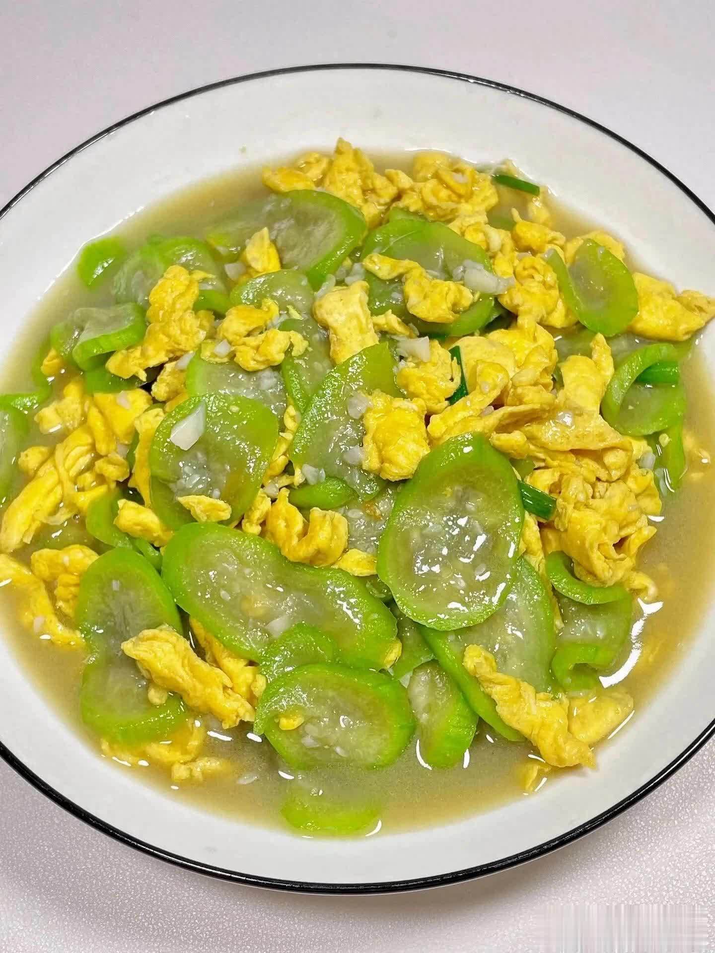 1.丝瓜去皮切条,鸡蛋打散,大火煎熟后盛出备用。