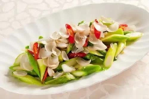 材料:芦笋 200 克、百合 1 头、盐、食用油适量。