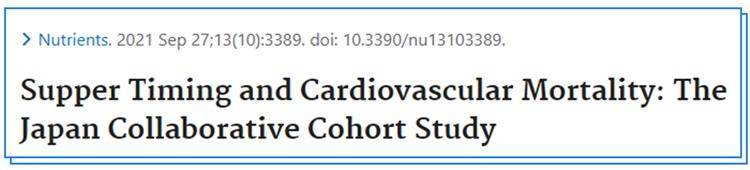 [4]Tang, Jingyun et al. “Supper Timing and Cardiovascular Mortality: The Japan Collaborative Cohort Study.” Nutrients vol. 13,10 3389. 27 Sep. 2021欧洲杯体育, doi:10.3390/nu13103389