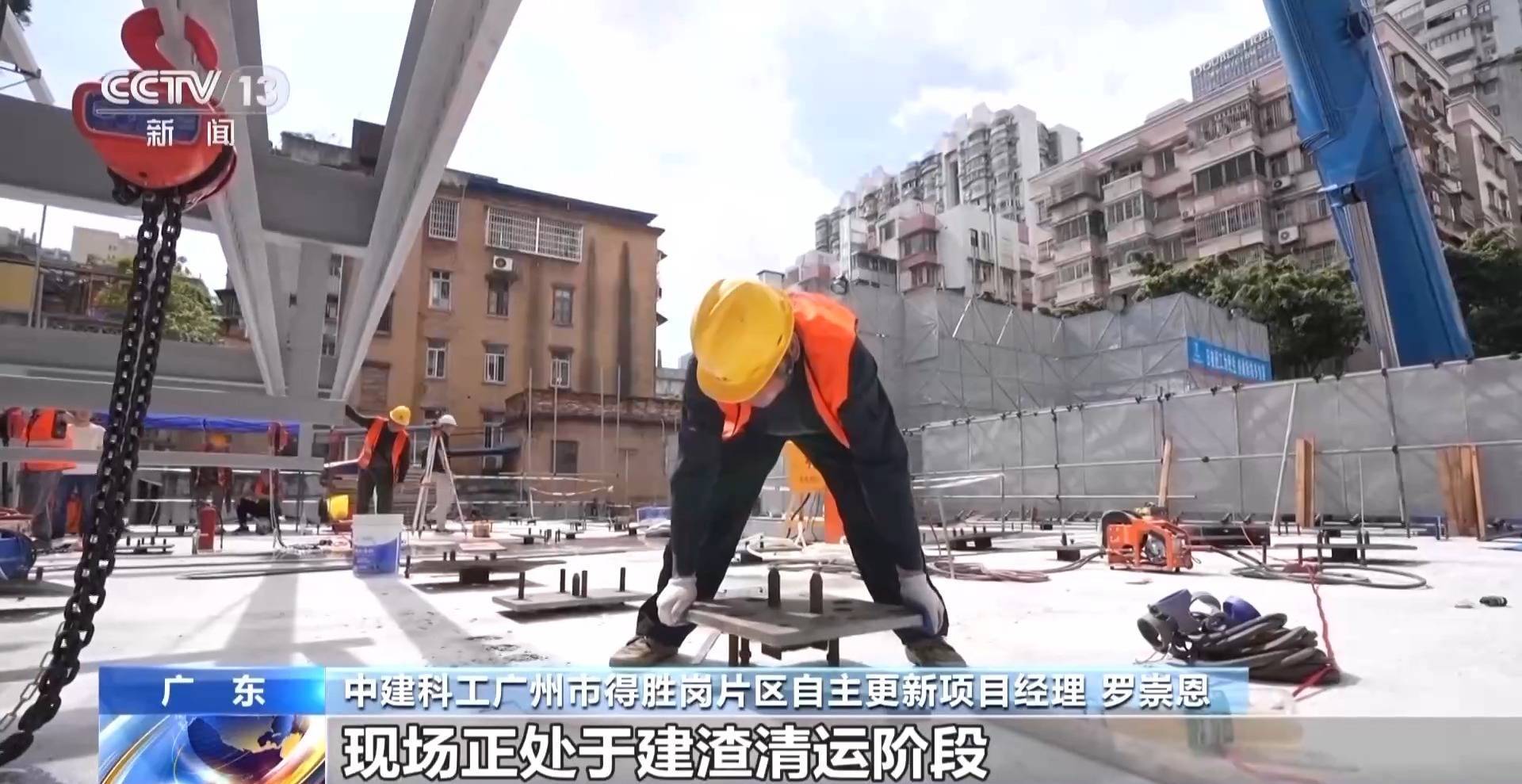 中建科工广州市得胜岗片区自主更新形势司理 罗崇恩:现场正处于建渣清运阶段,这个形势咱们禁受装置式和模块化的建造形状,把70%的前期职责放在工场,大幅普及施工成果,减少混浊,确保咱们的形势早委用。